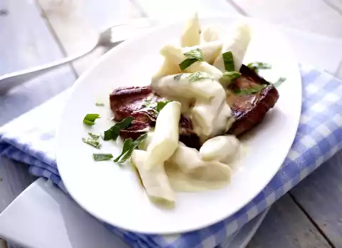Season the sauce with salt, pepper and possibly lemon juice. Heat drained black salsifies in the sauce for 2-3 minutes. Serve with the chops. Sprinkle with parsley. Boiled potatoes taste good with it.