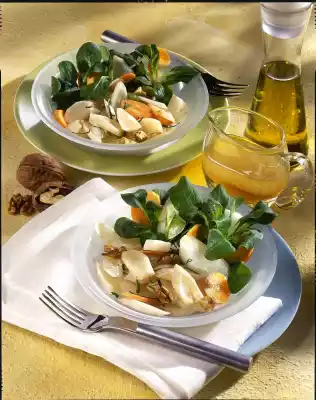 Mix with carrots, black salsify and marinade. Leave to stand for about 20 minutes. Coarsely chop the nuts. Clean and wash lamb's lettuce and pluck smaller if necessary. Serve with the marinated vegetables. Sprinkle with nuts