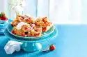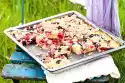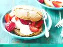 Cut a thin lid horizontally from the cake base. Whip the cream in 2 portions until stiff, pouring half the sauce powder into each. Approx. 1⁄3 Spread vanilla cream on the cake base. Spread the compote on top. Chill the cake base and the remaining vanilla cream for about 30 minutes.