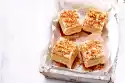 For the almond crust, fry butter, 75 g sugar, honey and almonds in a pan until light brown, stirring occasionally. Stir in milk. Take out and let it cool down.