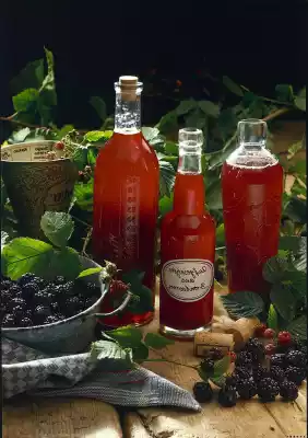 Pour it together with the grain, sugar and raspberry syrup into a well-cleaned bottle with a wide neck and close it tightly. Leave in a dark place for about 2 weeks. Shake from time to time. Then pour through a fine hair sieve and fill into bottles.