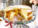 Mix flour, starch and baking powder and stir in with the milk. Grease the fat pan of the oven (32 x 39 cm) and spread the dough on top. Spread blackberries on top. Spread the glaze in patches. Bake in the preheated oven (electric cooker: 175 °C/ convection oven: 150 °C/ gas: level 2) for approx. 45 minutes. Let the cake cool down, cut into 20 pieces and dust with icing sugar