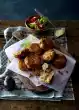 Heat the rest of the butter in portions in a large coated pan (approx. 28 cm Ø). Bake 3 pancakes (Bliny) one after the other from the dough. Let them cool down.