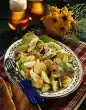 Fold in cucumbers and capers. Wash chives, dab dry, cut into small rolls and add to salad. Wash salmon, dab dry and cut into pieces. Season with salt and pepper. Heat clarified butter in a pan.