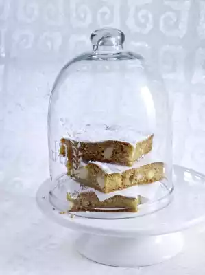 Pour the dough into the fat pan and press it smooth with the floured backs of your hands. Bake in a hot oven for 20-25 minutes. Let it cool down. Dust with icing sugar