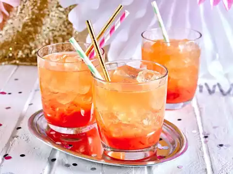 Rinse blood oranges hot and cut into slices. Spread crushed ice, blood orange and lime juice, gin and lime juice, gin and purple on 4 glasses, fill up with ginger ale and garnish with blood orange slices.