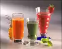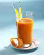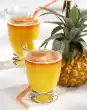 Colour orange juice with red food colouring. Remove some juice for the sugar rim. Top up the orange juice with ginger ale and apple juice. Put the rest of the red orange juice on a plate and dip the edges of the glass in it.