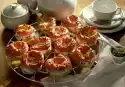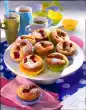 Whisk the egg yolks and spread them on the cakes. Bake in the preheated oven (electric oven: 200°C/ gas: level 3) for 10-15 minutes. Cut circles up to the peach five times, fold over one corner at a time and press on the cake, spread with egg white.