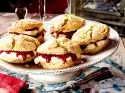 Separate eggs. Beat egg whites and 3 tbsp. cold water until stiff. Finally pour in sugar. Beat the egg yolks separately. Mix 150 g flour and starch, sieve onto the egg foam and fold in carefully. Mix the frozen blueberries with 1 tbsp. flour, carefully fold into the sponge cake mixture and place in a greased, flour-sprinkled ring cake mould (2.5 litres capacity; 22 cm Ø). Bake in a preheated oven (electric cooker: 175 °C/ convection oven: 150 °C/ gas: see manufacturer) for approx. 45 minutes (test with sticks)