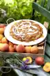 Line dough base with baking paper and cover with legumes. Bake blind in the hot oven on the middle shelf for about 15 minutes. Remove pulses and paper. Bake the base for another 8-10 minutes.