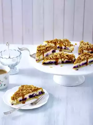 Add the almonds and simmer for another 3 minutes. Spread the almond mixture on the cheesecake and let it cool down. Cut the cheesecake into about 24 triangles.