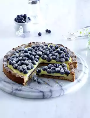 Spread the cooled shortcrust pastry with the fruit spread and pour vanilla pudding over it. Wash the blueberries, dab dry and spread on the pudding. Chill the cake for about 4 hours. Dust with icing sugar before serving