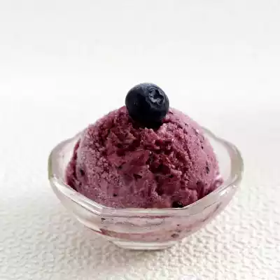Soak gelatine in cold water. Simmer 250 ml water and sugar in a pot until the sugar is dissolved, remove from heat and allow to cool. Squeeze out the gelatine, dissolve in the still warm sugar water and let it cool down further. Sort and wash the blueberries. Finely puree the sugar water, blueberries and lemon juice for about 3 minutes. Beat the egg whites and salt until stiff, carefully fold into the puree, which should be warm to the touch at most. Freeze the sorbet mixture in an ice-cream maker or put it in a flat, freezer-proof mould and freeze for 3-4 hours, stirring frequently.