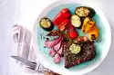 Clean the mushrooms, possibly wash and slice them. Clean, wash and cut the peppers into strips. Dab the meat dry and also cut into strips. Peel and finely chop the onion.