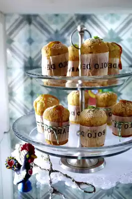Pour the dough into the prepared popover trays and let it rest for about 15 minutes. Then bake in the preheated oven (electric cooker: 175 °C/ convection oven: 150 °C/ gas: see manufacturer) for 15-20 minutes on the middle shelf. Remove the cake from the oven, let it cool down briefly and remove the cake from the pan. Let cool slightly on a cake rack