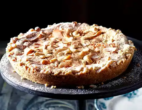Preheat oven (electric cooker: 175 °C/circulating air: 150 °C/gas: see manufacturer). Grease tart tin with lifting base (24 cm Ø), dust with flour. For the crumble dough, put 200 g flour, 1 pinch of cinnamon and 1 pinch of salt in a bowl.