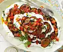 Roast pine nuts in a hot pan until golden brown, drizzle with the remaining olive oil and add thyme. Sprinkle the pine nut and thyme mixture over the au gratin eggplants and serve.