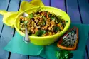 Wash the coriander, dab dry and chop finely. Roast sesame seeds in a pan until golden brown, remove. Pour sesame and coriander over the vegetables.