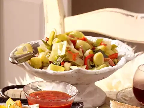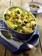 Heat the oil in a large frying pan. Fry the bacon until crispy. Add all the vegetables and fry well. Season with salt and pepper. 3⁄8 l Pour on water, add broth and bring to the boil. Cover and stew for about 30 minutes.