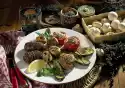 Heat 1 tablespoon of oil in a frying pan. Fry the onion and minced meat for about 5 minutes, turning occasionally. Add 1 tablespoon of oil, heat up. Fry the mushrooms for about 3 minutes, remove.