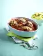 Season with salt and pepper. Deglaze with cream and another 200 ml water. Let it boil down for 5 minutes. Wash and clean the tomatoes. Add cucumber with the liquid, meatballs and tomatoes. Add sauce thickener, bring to the boil. Season again with salt and pepper. Wash chives and cut into small rolls. Stir into the ragout. Drain the potatoes. Serve ragout and potatoes garnished with fresh herbs
