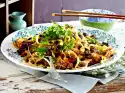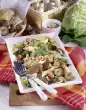 Peel the cucumbers, cut them in half lengthwise and remove the seeds. Cut the cucumbers into thin slices. Peel onion, wash borage leaves and cut into strips. Clean and wash the chanterelles. Wash chops and dab dry. Fry in hot oil while turning for about 12 minutes. Season with pepper.