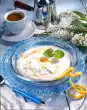 Clean the mushrooms and rub with kitchen paper. Cut the mushrooms into slices. Cut bacon into small cubes. Peel and finely dice onion. Put bacon in a hot pan and take it out.