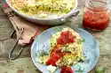 Rinse the millet in a sieve with hot water and drain. Simmer in 1⁄2 l salt water (1⁄2 TL salt) for about 10 minutes. Leave to swell for 5-10 minutes on the switched off stove, covered and in the residual heat. Arrange peppers with sauce and millet.