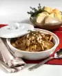 Crush juniper berries and peppercorns in a mortar. Mix in 2 teaspoons of salt, cayenne pepper and paprika powder. Wash the meat, dab dry and season all around. Place on the oiled fat pan of the oven and cook in the preheated oven (electric cooker: 200 °C/ convection oven: 175 °C/ gas: level 3) for approx. 2 1/2 hours. Peel, wash and slice the potatoes.