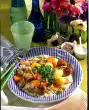 Bake in a preheated oven (electric: 200 °C/ gas: level 3) for 20-30 minutes. After 10 minutes, sprinkle with wiskey and turn once. Wash herbs, chop coarsely. Carefully turn the tomatoes over. Season with salt, pepper and herbs, braise for another 15 minutes. Serve braised tomatoes and ribs garnished with fresh herbs. Serve with fresh baguette