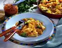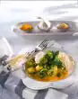 Add the onion, garlic and spinach and let them collapse for about 3 minutes. Season with salt and pepper. Arrange in a bowl. Add bread