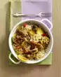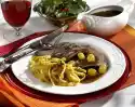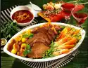 For the polenta, boil up the milk with a little salt, pepper and nutmeg. Stir in the corn semolina and let it swell for about 10 minutes on the switched off hotplate. Stir while doing so. Remove the roast from the stew stock and season the stock with salt and pepper. Cut the roast into slices and put them back into the stock. Garnish with rosemary and thyme. Add polenta extra