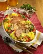 For the dumplings, mix the fat with the whisk of the hand mixer until foamy. Stir in eggs one after the other, season with salt and nutmeg. Mix 400 g flour with baking powder, sieve and add.