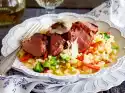 The next day peel and halve the onions and cut them into strips. Peel garlic and chop finely. Wash, clean and dice the tomatoes. Wash the meat, dab dry and cut into cubes of about 2 cm.