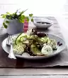 Drain the peperoncini. Clean, wash and drain the salad. Peel onions and cut into fine rings. Wash and slice the tomatoes. Wash the basil and pluck the leaves.