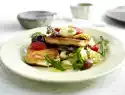 Sort the sprouts, wash and drain. Peel onion and cut into fine slices. Wash, quarter and core the apple. Cut apple and cheese into pieces, cucumber into slices