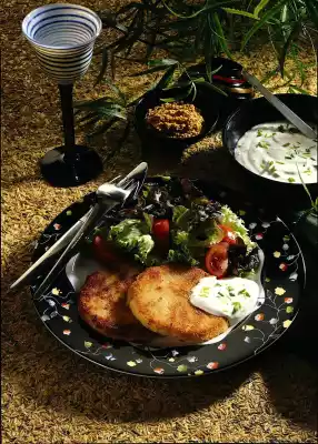 Turn the celery slices in the egg first. Carefully spread some mustard on one side and then turn the slice in the breadcrumbs. Heat the fat in a coated pan and fry the vegetable slices in it until golden brown.