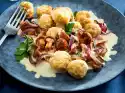 In the meantime, wash blueberries and peel kiwis and bananas. Cut the kiwis into fine cubes and divide the bananas lengthwise.