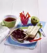 Tip: Any other jam or plum jam can be used instead of strawberry jam. Instead of strawberries you can also eat 3 apricots or 1 1/2 kiwis