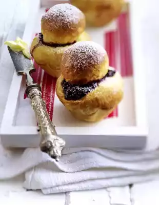 Brush each brioche with egg milk and bake in a preheated oven (electric cooker: 200 °C/ convection oven: 175 °C/ gas: level 3) for approx. 15 minutes. Remove the cakes, let them cool down for about 10 minutes, turn out of the moulds and dust with icing sugar. Serve hot or cold. Serve with butter