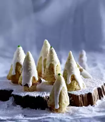 Wash the lime hot, dab dry and finely grate the peel. Grate the peel and 4 tablespoons of sugar with your fingers until the sugar turns a soft green colour. Squeeze the lime. Mix icing sugar with 2-3 tbsp. juice to a thick, creamy glaze (if necessary, set aside approx. 4 tsp. for the pralines). Dribble over the little trees. Sprinkle with lime sugar (use the rest for the pralines if necessary or keep them airtight). Decorate with sugar pearls as desired. Leave to dry