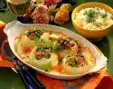 Add the beans to the broth and cook for another 10 minutes. Remove the smoked pork and bay leaf from the stock. Cut the smoked pork into cubes and add them again. Stir 4 tablespoons of cream and flour until smooth. Add remaining cream and thyme to the stock and heat. Add the cream while stirring constantly and let it boil for about 2 minutes. Season to taste with salt and pepper. Serve stew and potatoes in portions garnished with thyme