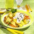 Clean, wash and cut the radishes into small cubes. Peel and finely dice the onion. Wash parsley and chives and dab dry. Chop parsley finely. Cut chives into small rolls.