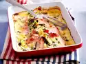 Place 1 heaped tablespoon of mashed potatoes in each of 4 ovenproof flat baking dishes and smooth them down. Pour the rest of the mashed potatoes into a piping bag with a perforated spout and spray a tufted ring around the edge of the mould. Spread the broccoli and sausage in the middle, leaving the middle free. Pour the mustard sauce over the broccoli and sausage. Carefully place 1 beaten egg in the middle. Bake in a preheated oven (electric cooker: 200 °C/ convection oven: 175 °C/ gas: see manufacturer) for approx. 20 minutes. Remove the ramekins and serve immediately