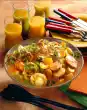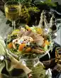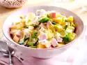 Roast the flaked almonds in a pan without fat, take them out immediately and let them cool down. Roll the puff pastry slices lengthwise into 6 strips. Turn the strips into a curl and place them on a baking tray lined with baking paper. Mix egg yolk and cream, brush curls with it and sprinkle with sesame and poppy seeds. Bake in a preheated oven (electric range: 225 °C/ convection oven: 200 °C/ gas: level 4) for 8-10 minutes until golden brown. Wash the chives, dab dry and cut into fine rolls. Mix crème fraîche, horseradish and milk. Stir in chives and season to taste with lemon juice and salt. Peel and chop the egg. Cut salmon into cubes. Mix broccoli and salmon, arrange in 6 glasses and pour the horseradish cream over them.