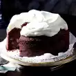 Stir in liquid chocolate butter by the spoonful. Stir in flour briefly. Fold in 2 portions of beaten egg white. Smooth the dough in the springform pan. Bake in the hot oven for about 25 minutes (cake should still be moist inside).
