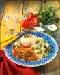 Clean and wash the Brussels sprouts. Bring the stock to the boil. Add the sprouts and cook for about 25 minutes at low heat. In the meantime, peel the skin off the sausage, halve the sausage and cut into thin slices. Wash chives and parsley, dab dry and cut into rings or chop.
