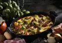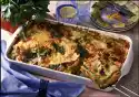 Peel, wash and dice the potatoes. Clean and wash the Brussels sprouts. Pre-cook both in boiling salted water for 5 minutes and drain. Cut the smoked pork loin into cubes. Put everything into a greased ovenproof dish.