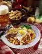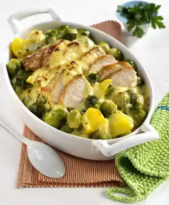 Place the cabbage and potatoes in a greased ovenproof dish. Cut the fillets into slices and place them on top. Pour sauce over them. Sprinkle with nuts. Gratinate in a preheated oven (electric cooker: 225 °C/circulating air: 200 °C/gas: level 4) for 8-10 minutes