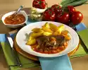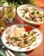 Cut the ham into strips. Thicken vegetable stock and season to taste. Sprinkle ham and parsley over it